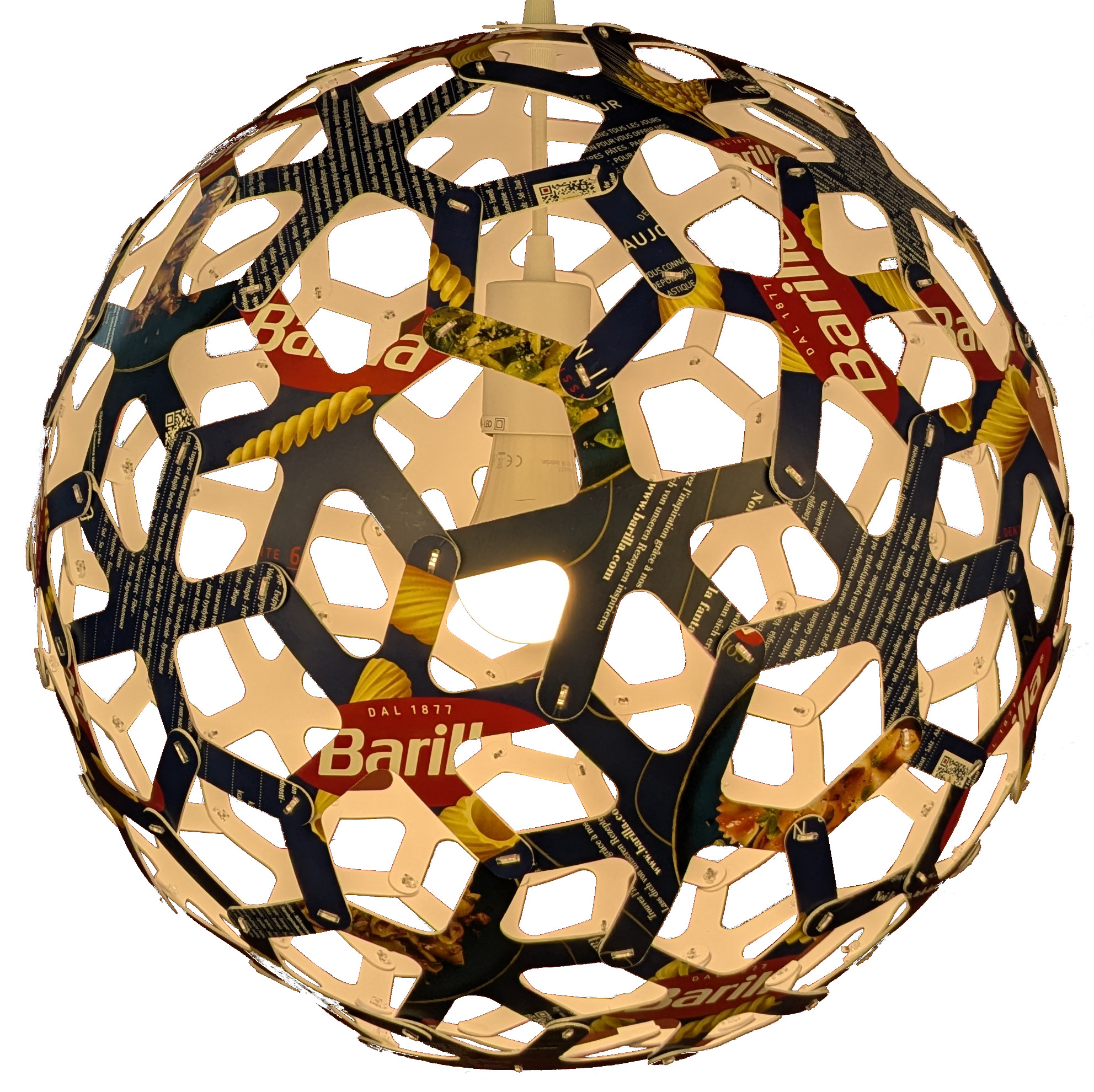 60 pièces identiques, un assemblage précis, et une lumière qui révèle la structure.
