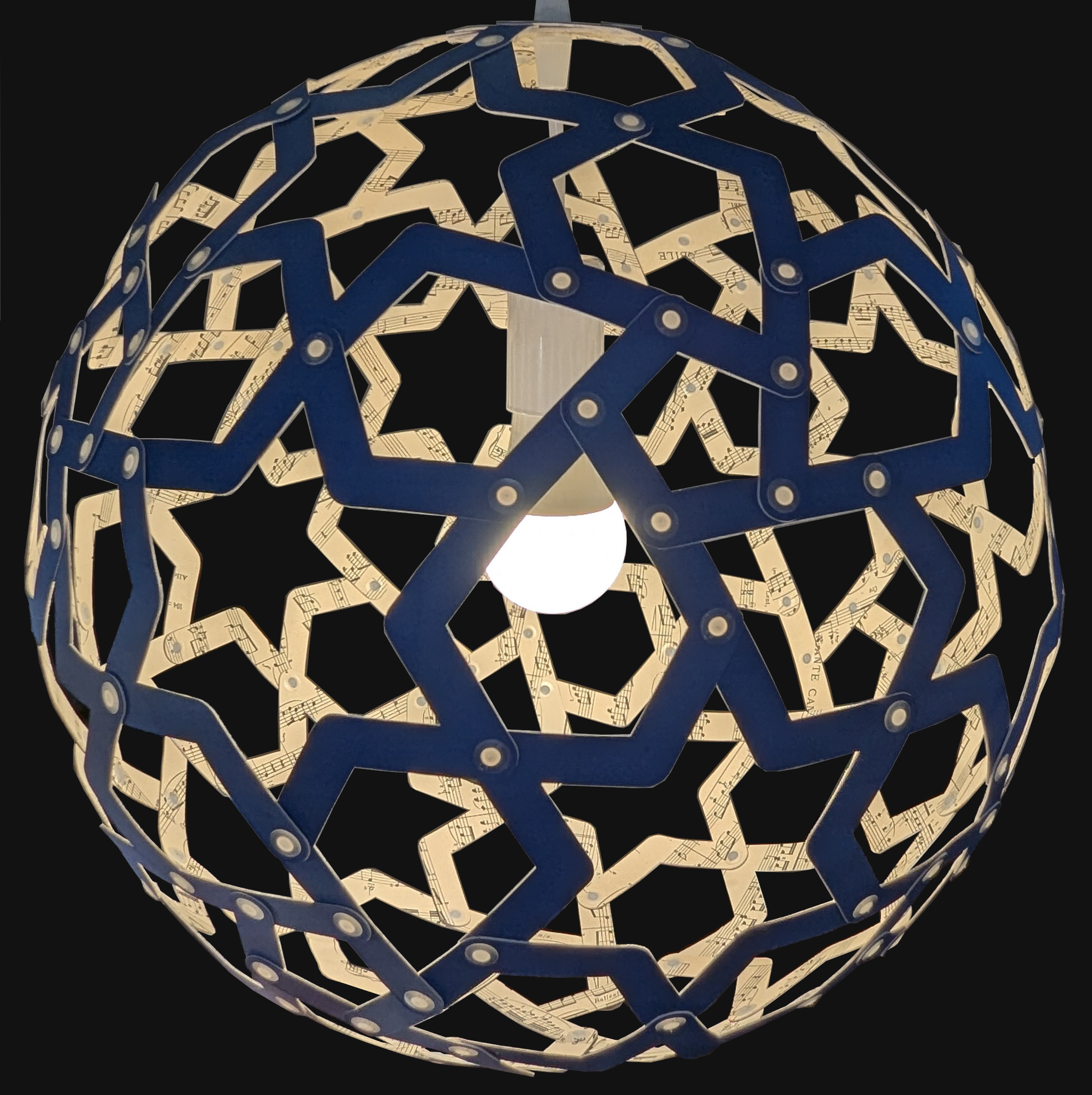 Assemblé à partir de 60 éléments identiques, il forme une sphère parfaite dont les entrelacements dessinent un motif en étoile, visible de jour comme de nuit.