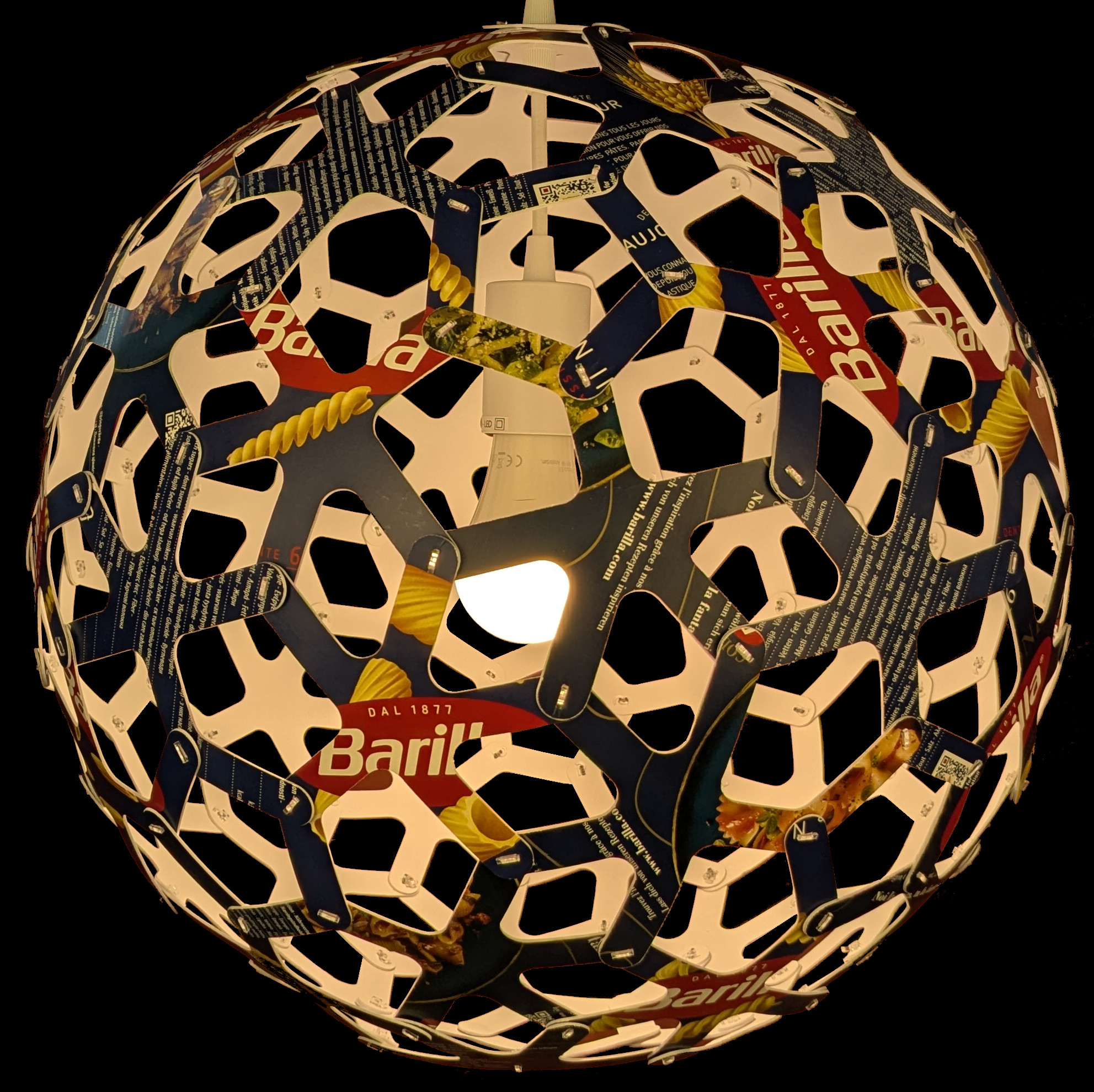 Le luminaire Al Dente est une pièce unique en boîtes de pâtes réemployées.
