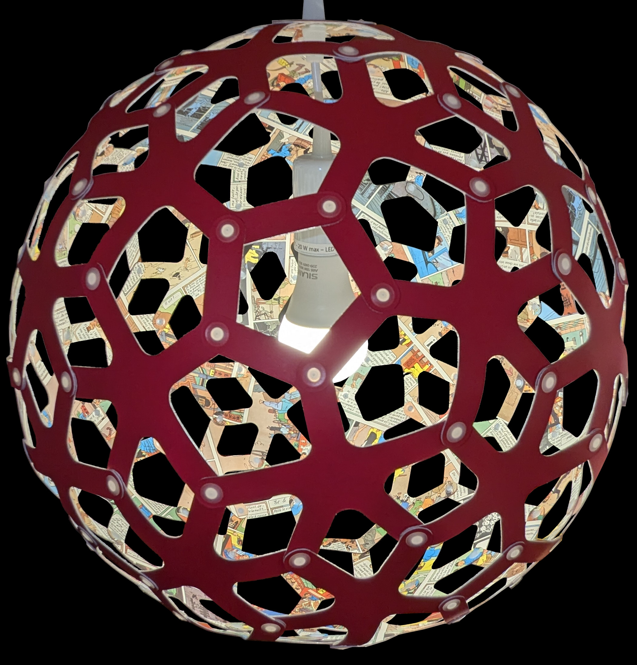 Sphère lumineuse en carton coloré et planches de bande dessinée